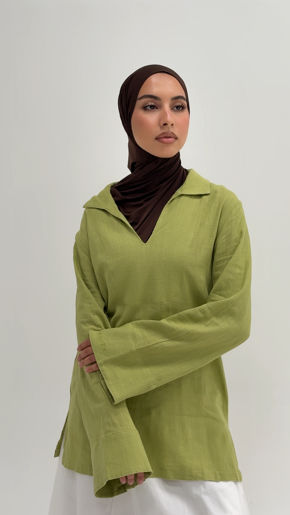 Une blouse en lin légère et fluide, au col V et aux manches évasées. Agréable à porter, elle allie confort et élégance naturelle, idéale pour sublimer vos looks du quotidien comme vos moments plus habillés.